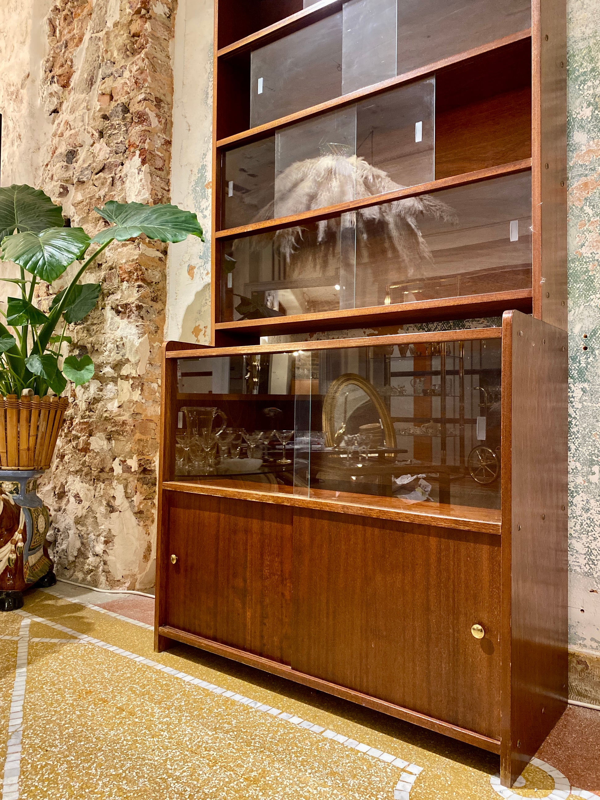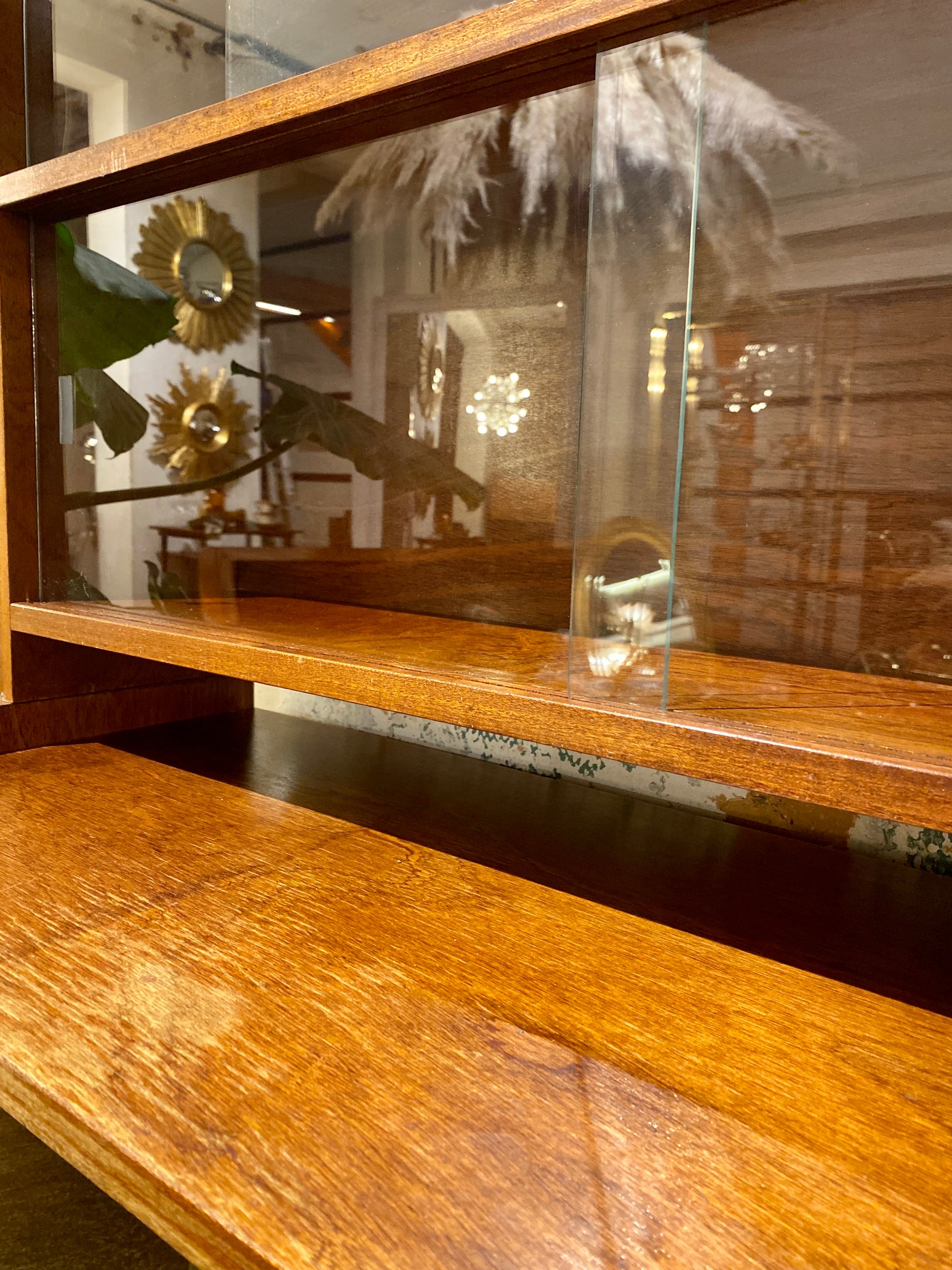 Les portes de la partie inférieure peuvent être remplacées par deux vitres fournies avec l'ensemble. Quelques marques du temps sont présentes compte tenu de son âge (un minuscule éclat dans une vitre pris en photo ainsi qu’une décoloration), mais elle reste en très bel état général !